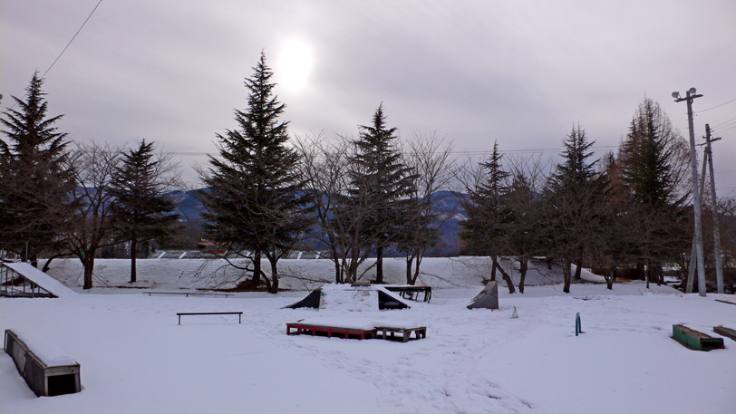 数日前に降った雪が溶けず、sk8不可。snowpark!?