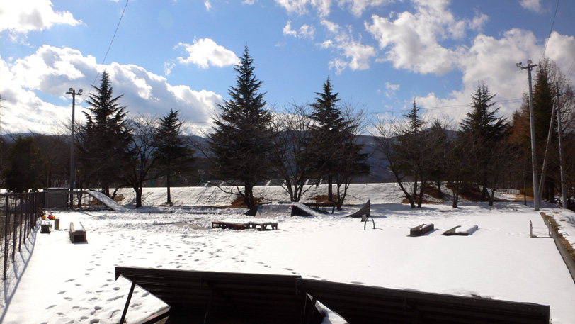 数日前に降った雪が溶けず、sk8不可。
